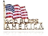 The American flag pin brooch has Swarovski rhinestones on the blue corner. Nicely carved out of brass toned metal the pin brooch rightly says, "God Bless America".