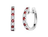 Rich red rubies alternate with sparkling white diamonds in a new twist on the classic hoop earrings. Crafted in lustrous 10 karat white gold and featuring a total gem weight of 3/10 carat these gorgeous gemstone earrings are not to be missed. SKU: 01CE2800RUW