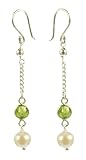 Sterling Silver Bead and Drop with Round Peridot Cabochon & White Pearl Earrings