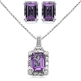 Sterling Silver Emerald Cut Amethyst with Created White Sapphire Accents Pendant Necklace and Earrings Diamond Box Set