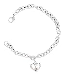 This fine quality sterling silver oval link charm bracelet comes complete with an open heart charm, accented with a genuine pink sapphire. It makes a lovely gift and can easily be personalized with additional charms. The bracelet measures 6 3/4 inches long and closes with a simple and secure lobster-claw clasp.