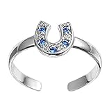 Sterling Silver Plain Toe Ring - Horseshoe with Clear and Blue Sapphire CZ