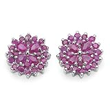 Here's a pair of showcase earrings that will become the talk of any formal occasion you wear them to! Boasting an impressive setting of 48 genuine ruby pears and rounds, these cluster earrings hold 3.60 carats of genuine rubies!�Cast in .925 solid sterling silver, this pair is the one to be cherished for a very long time!�