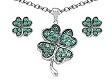 Celtic Love by Kelly Simulated Emerald Lucky Clover Pendant Box Set with matching earrings crafted in .925 Sterling Silver Dimensions: Width: 13.00 mm Length: 25.00 mm. 48 Stones 0.70 Carats 1.3 mm Round Color: Green Clarity: Clean Free 18 inches chain included . Finejewelers Style Number: 304188.