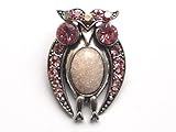 This lovely owl brooch comes with antique silver metal setting,pink colored Czech crystal rhinestones embedded on it's wings. Two large pink rhinestones represent its staring eyes. One large bead represents the abdomen.