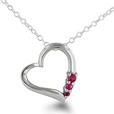 Let that special someone know she will be in your heart forever with this 1/8 carat three stone ruby pendant. The total gem weight of this pendant is 1/8 carat. The pendant contains three round brilliant ruby stones. Ruby, a member of the corundum family of gemstones, is generally red in color, from light pink to dark red. The most common treatment for the enhancement of color is heat treating. In the heat treating process, rough un-cut rubies are heated to 1700-1800 degrees Celsius, which improves both color and clarity. All rubies that Superjeweler sells are heat treated for the enhancement of red color and clarity.