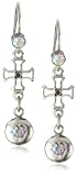 These delightful cross earrings are accented by an aurora borealis coated clear crystal dangling at the base. The silver tone French wires are accented with the same style of crystal at the top of the design.