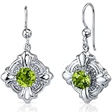 Gemstones: 2 Pieces Genuine Peridot, Round Cut 6 mm diameter, 2.00 carats total weight, Leaf Green Hue with Brilliant Sparkle. Earrings: 4.60 grams, Pure Sterling Silver Rhodium Finish with .925 stamp, Earrings feature Stud Posts with Bullet Backs, exceptional Design and Craftsmanship. Perfect gift for Mothers Day, Birthdays, Valentines Day, Graduation, Christmas or just about any other occasion. Money Back Guarantee. Includes a Signature Gift Box & style SE622