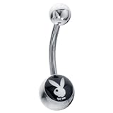 This chic belly button ring features a white Playboy Bunny logo on a jet black background. High quality comfortable, perfect for every day.