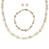 Accessorize with the beautiful pastel hues of this multi-color freshwater cultured pearl three-piece jewelry set. The set includes a pair of white pearl stud earrings with sterling silver posts and backings, an 18-inch multi-color pearl necklace with a sterling silver lobster-claw clasp, and a multi-color pearl stretch bracelet. The pearls are mixed size, creating a beautiful texture, and the pastel colors--peach, mauve, and white--harmonize perfectly.