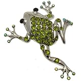 This Fabulous Green Jumping Playful Frog Brooch features Olive Green Crystals with AB Crystal Accents set on an Polished Silver colored frame. This Costume Jewelry Brooch is Perfect for a Gift and makes a Stunning addition to a Brooch and Pin Collection. Frog Measures - 5.5cm x 4cm. Gift Boxed and Presented Beautifully.