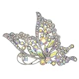 Here is a beautiful aurora borealis crystal butterfly brooch. It measures 2.5" tall and 1 3/4" wide. Brooch can be pinned on many different things to make a great fashion statement! This beautiful brooch pin comes to you in a foil gift box though may be a different box color than the one shown.