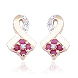 A quartet of dainty rubies rests beneath a golden loop in these elegant post-set earrings. Fashioned in gold-dipped sterling silver with pave texturing and a diamond accent, they add elegance to any outfit.