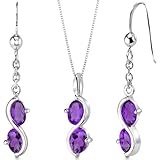Gemstones: Genuine Amethyst, Oval Shape, 2.25 carats total gem weight. Amethysts have a deep Orchid Purple Hue, Brilliant Sparkle and Clean Clarity. Pendants and Earrings are made from Sterling Silver with a total metal weight of 4.50 grams. The set feature top quality craftsmanship with Rhodium finishing. Set includes a 18 inch Sterling Silver Box Chain and Designer Gift Box. Perfect gift for Christmas, Mothers Day, Valentines Day, Birthday, Graduation, Bridesmaids Jewelry. Style SS3390
