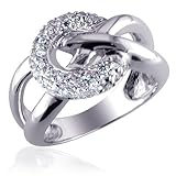 Make a promise to the Love of your Life with this gorgeous Love knot Ring. This ring is lovingly crafted from Rhodium Plated .925 Sterling Silver and encrusted with glittering Pave Set White Cubic Zirconia. The intertwined silver strands form a sleek bejeweled love knot that tapers to a smooth comfort fit. The ring comes in Size 7 (available in size 7 only). This ring has a top dimension of 7/8 inch x 1/2 inch and weighs 6.15gms. Comes with a 100% Money Back Guarantee, Free Gift Box and FREE SHIPPING.