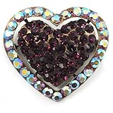 Fun-loving romantics are bound to fall for Bronze Tone Dazzling Diamante Heart Brooch. The open, heart-shaped brooch's dimensional design flaunts deep purple and iridescent pave set dazzling crystals. The piece crafted in bronze tone metal and fastens with a flag pin and revolver. The heart measures about 4cm x 3.5cm. Fantastic, special gift idea - Christmas, birthday, anniversary, mothers day, etc. Easily fastens to any bag, hat, coat or jacket.