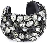 Luxuriate in the beautiful black-and-white glamour of the Joanna Laura Constantine Jet and Gemstone Bangle Bracelet. The gunmetal-plated copper bangle is studded with crystals in many shades of grey. Additionally, it's covered by a cable chain that crisscrosses in all directions. This accessory of intrigue measures 2.5 inches in diameter, 2 inches in width, and 3 inches in length.