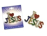 Sparkling, Glittery colors create our I Love (heart) Jesus Pin. 18Kt Gold layered. Carded and ready for gift giving or resale!