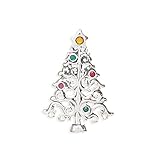 Sterling Silver Christmas Tree with Colorful Crystals Pin/Pendant. Measures 42mm x 29mm and features 3mm yellow, green, red, and pink crytals.