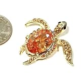 Swarovski Crystal & Lab Created Topaz Gold-Tone Sea Turtle Multi-Fuction Brooch Pin / Pendant Slide