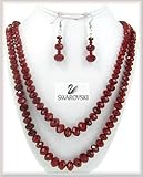 Elegant Double Strand Faceted Corundum Ruby Necklace and earring set for day or evening wear. Nothing sparkles like Swarovski crystal jewelry including our crystal Necklaces. We use a variety of Swarovski crystals, we keep our eyes open for unusual colors and styles for our sparkling necklaces. Crystals in this set is called Ruby Quartz it is color enhanced genuine ruby corundum mineral.