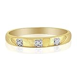 Marvel at this lovely diamond band featuring 3 diamonds evenly spaced along the top of the ring. This is one beautiful diamond promise ring. Three diamonds, solid 10 karat yellow gold, H/I in color, I2 in clarity.