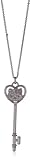 The Hello Kitty White Sapphire, Diamond, and Pink Bow Kitty Key Pendant looks like it unlocks a chest but is actually a treasure itself. Dangling from a long 24-inch, 925 sterling silver cable-style chain is an exquisite pendant in the shape of an old-world key. The bulk of the key is made of the same fine sterling silver as the chain. Its handle is in a heart shape within which is an adorable "Hello Kitty" face sparkling with white diamonds and sapphires. This charming necklace closes at the back with a spring-ring clasp.