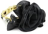 Sumptuous silk and glittering crystals make the Joanna Laura Constantine Black Silk Flower on Gold Bangle Bracelet both fun and instantly unforgettable. The 3-inch wide gold-plated bangle is encrusted with black, grey, and clear crystals and is topped with a striking black silk flower. Sure to turn heads, this stunning bracelet includes a cloth bag to keep it looking great for years to come.