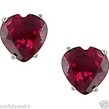 1 7/8 Carat Ruby Heart 10K White Gold Earrings. Rich red ruby hearts grace these pretty sparkling earrings. Jewelry is crafted of gleaming 10-karat white gold. Alluring solitaire-style earrings are a delightful choice to enhance your everyday style. Two heart-shape, prong-set rubies measure 6 mm in diameter. Total gem weight is 1 7/8 carats. Earrings close with butterfly backs. Earrings measure 6 mm long x 6 mm wide.